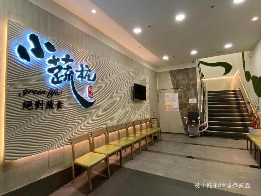 一上二樓就會看到用很多綠色植物裝飾的櫃檯,就很以蔬食感。