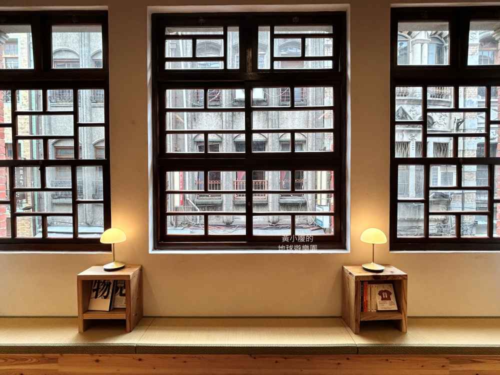 這張很有《郭怡美書店》拍照代表性,注意到不少部落客也是在這邊拍照,窗戶光影設計很棒,完美捕捉了灑下的陽光,同時又能欣賞到對面的《怡和泰》建築,有種新舊之間的交錯融合美。
