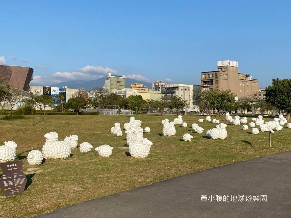 《新北考古公園》是以十三行原住民的風格+考古概念來設計公園 ( 綿羊是裝飾啦~ );
